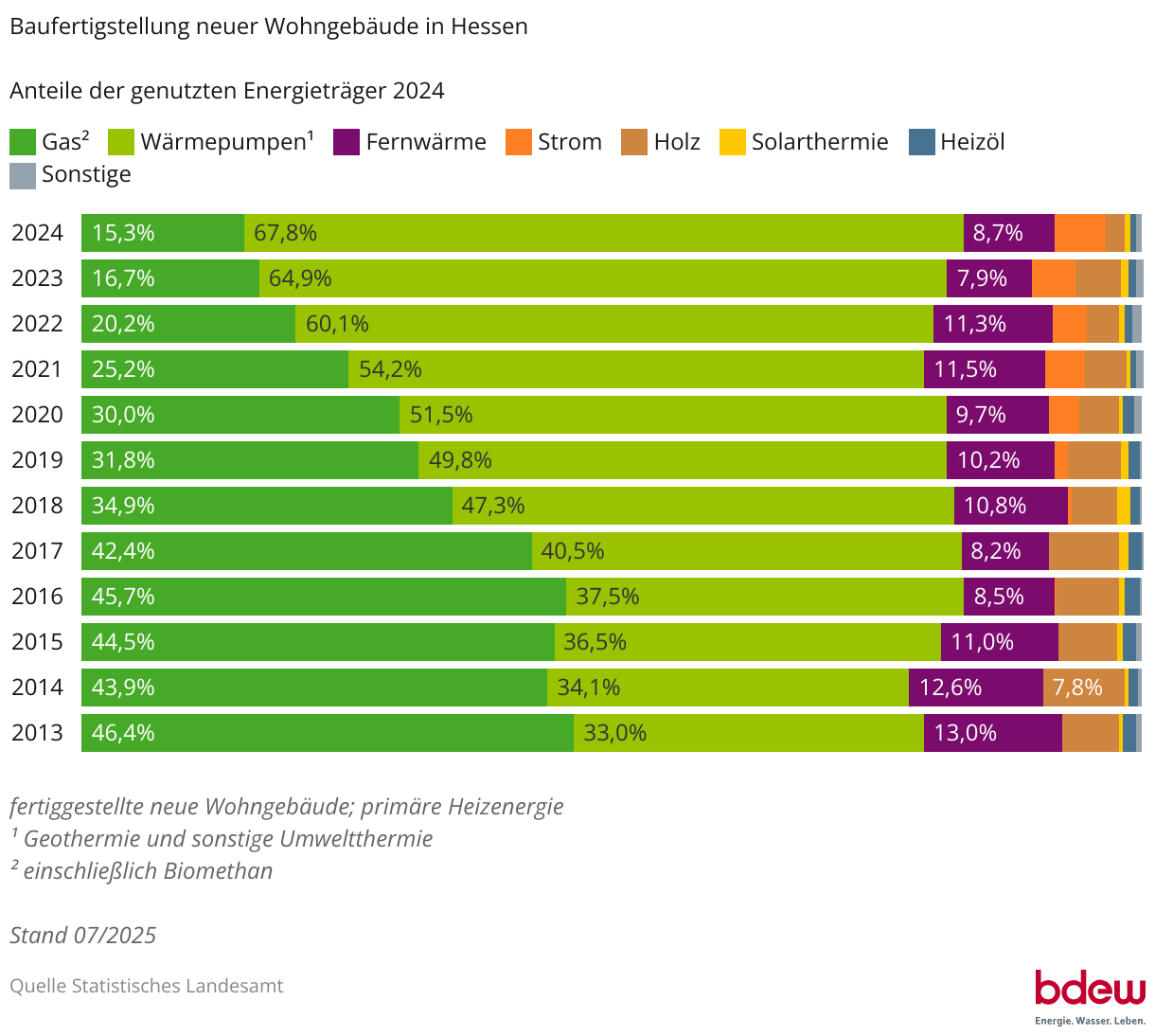 Baufertigstellung neuer Wohngebäude in Hessen Anteile der genutzten Energieträger 2024