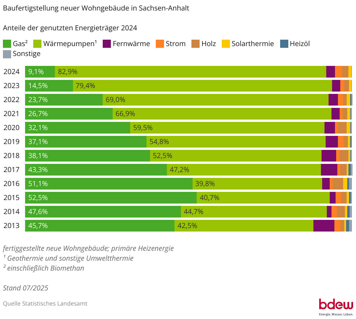 Baufertigstellung neuer Wohngebäude in Sachsen-Anhalt Anteile der genutzten Energieträger 2024