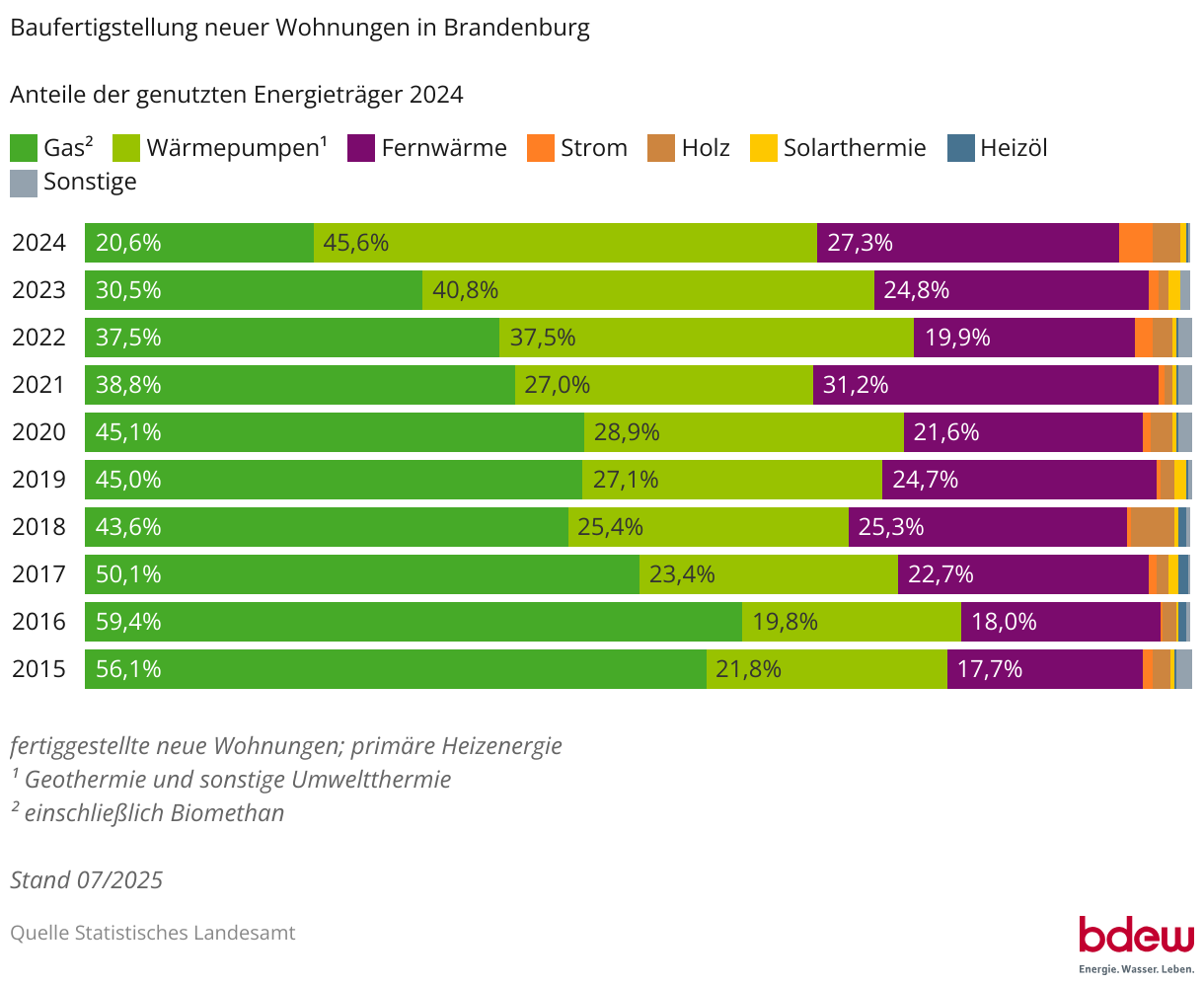 Baufertigstellung neuer Wohnungen in Brandenburg Anteile der genutzten Energieträger 2024