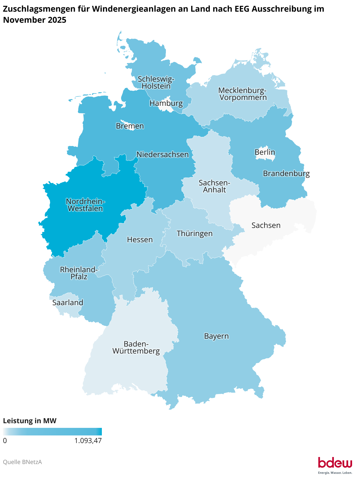 Zuschlagsmengen für Windenergieanlagen an Land nach EEG Ausschreibung im November 2025