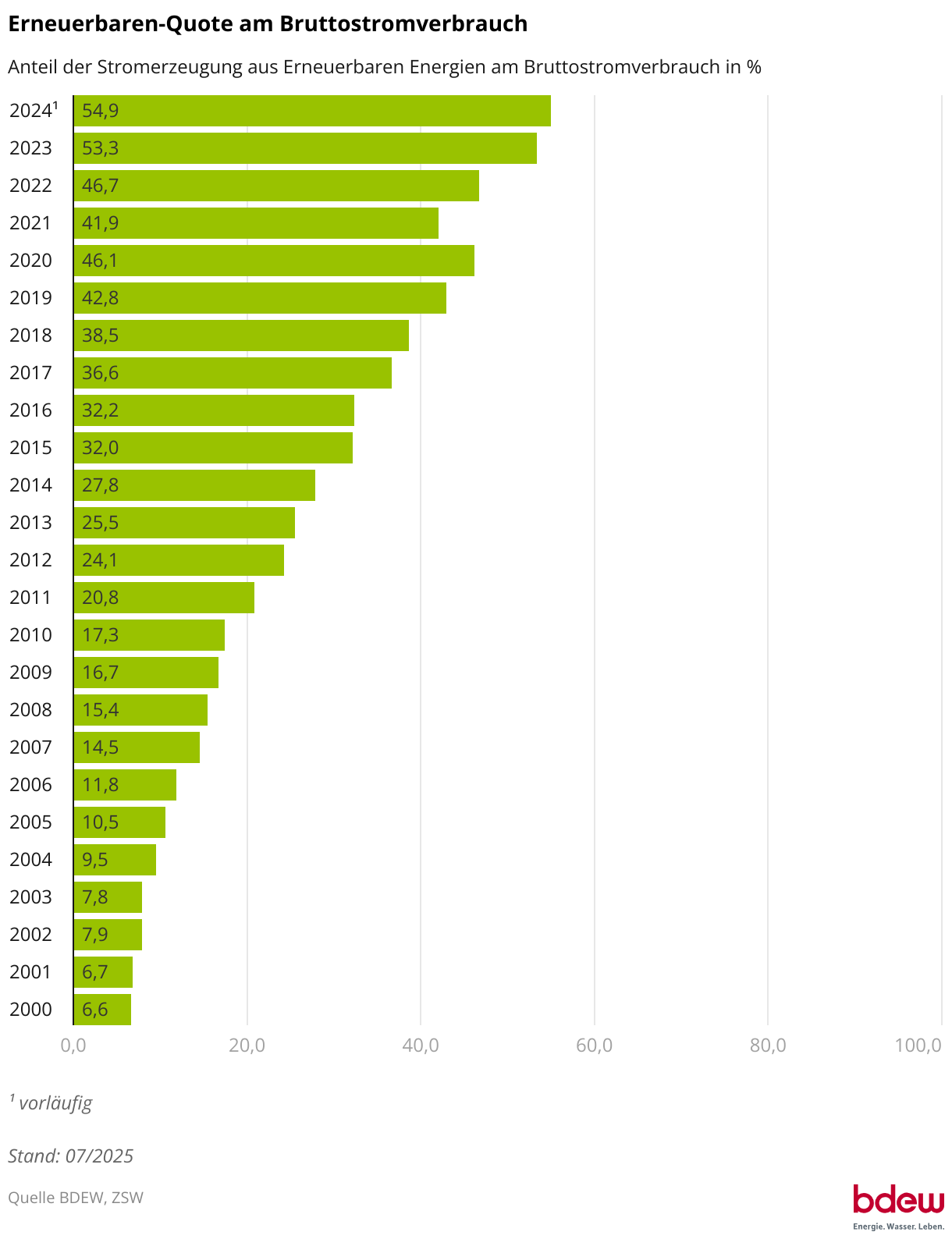 Anteil der Stromerzeugung aus Erneuerbaren Energien am Bruttostromverbrauch in %