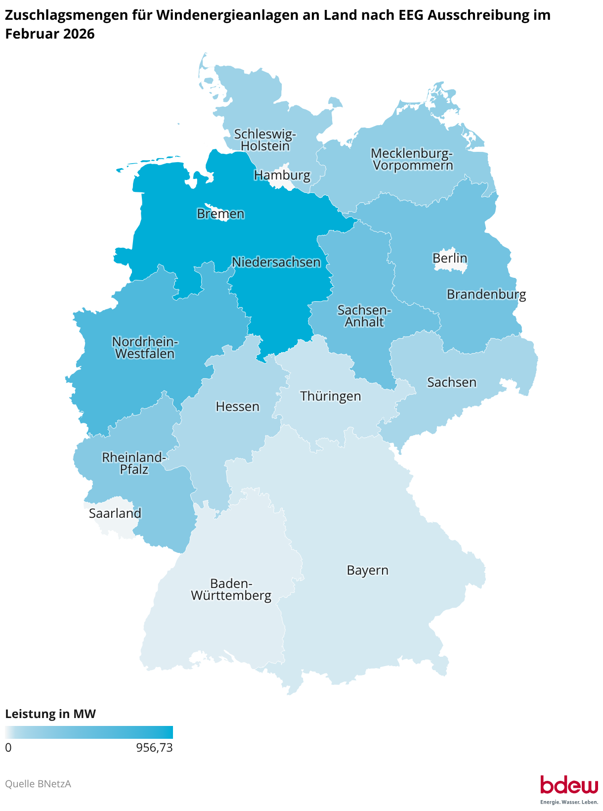 Zuschlagsmengen für Windenergieanlagen an Land nach EEG Ausschreibung im Februar 2026